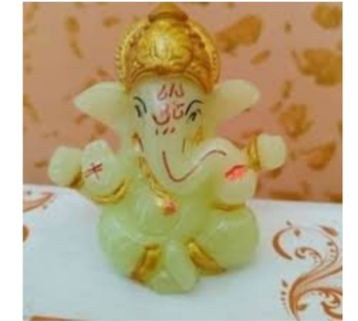 Ganesha idol/figurine made with a radium/fluorescent material or paint, causing it to glow in the dark after being exposed to light. Suitable for home, temple, or car dashboard.